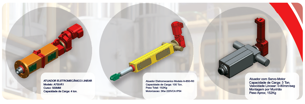 Projetado para substituir o sistema de acionamento hidráulico na indústria em geral e em caminhões bem como máquinas fora-de-estrada eliminando o cilindro atuador do tipo hidráulico, mangueiras, reservatórios de óleo, bomba hidráulica e válvulas direcionais e segurança. Desta forma é livre de vazamentos e dos cuidados de reposição de óleo, vedação e os perigos decorrentes do uso de sistemas óleo pressurizados. É comparativamente mais leve e de menor número de componentes bem como menor custo de manutenção. O equipamento é seguro e projetado para altas cargas com controles operacionais de velocidade e força.